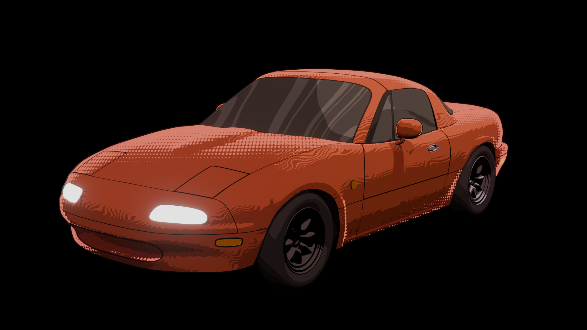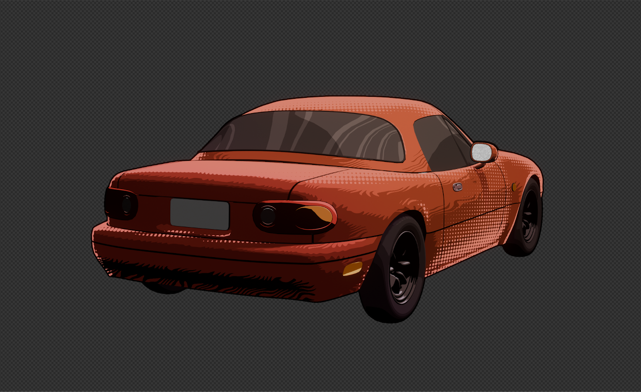In the fifth trimester, I worked on a car animation with stylised graphics. I personally am not a big car guy myself, but my group members had a big vision, so I decided to take a back seat with this one. I am, however, very interested in stylised graphics, and I was put in charge of all the shaders and texturing for the animation. That, along with a couple cars and most of the background work.