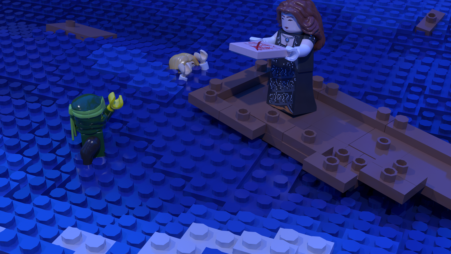 Me and my group immediately knew we wanted the whole environment to be done in Lego. However, we also knew how hard that would be, so I set out to build a geometry node system that would convert mesh to Lego. However, I wasn’t able to use the methods taught on YouTube, as they relied on a mesh-to-volume node to scatter the points on a grid within the mesh. At the time, my PC was not very good, so I ended up creating a grid with math and deleting points outside the mesh with the raycast node. This ran a lot smoother and allowed us to do the Lego water as well.